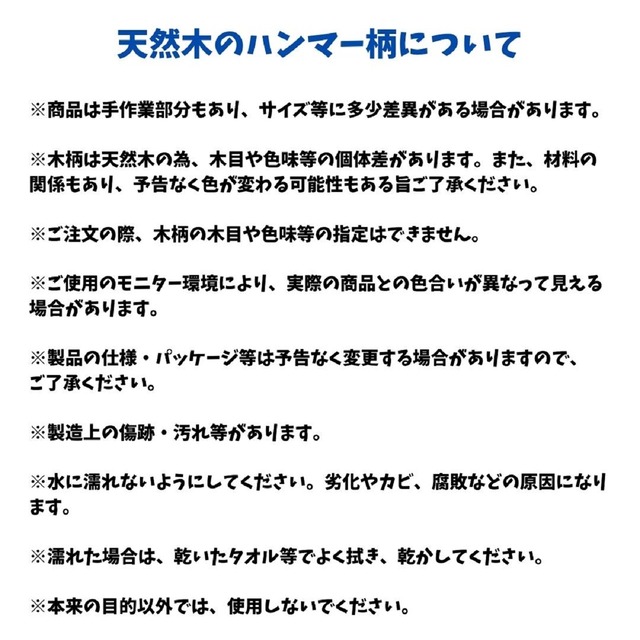 差し込み部分はハンマーの頭の口より大きく設計されております。丁度良いサイズに加工して頂き、クサビを打込んで御使用下さい。