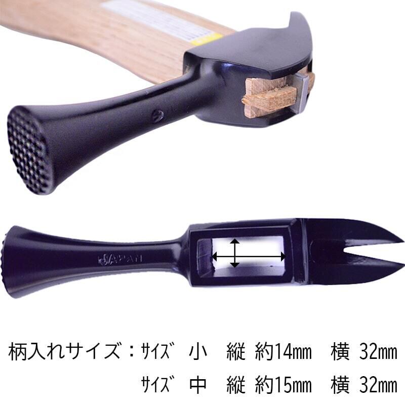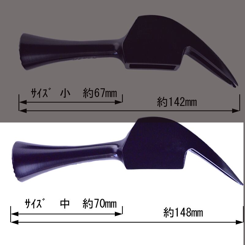仮枠作業が必要になる様々なシーンで扱いやすいよう頭部はやや長いラッパな形状で、片側が打撃部、もう片側が釘抜き部となっています。