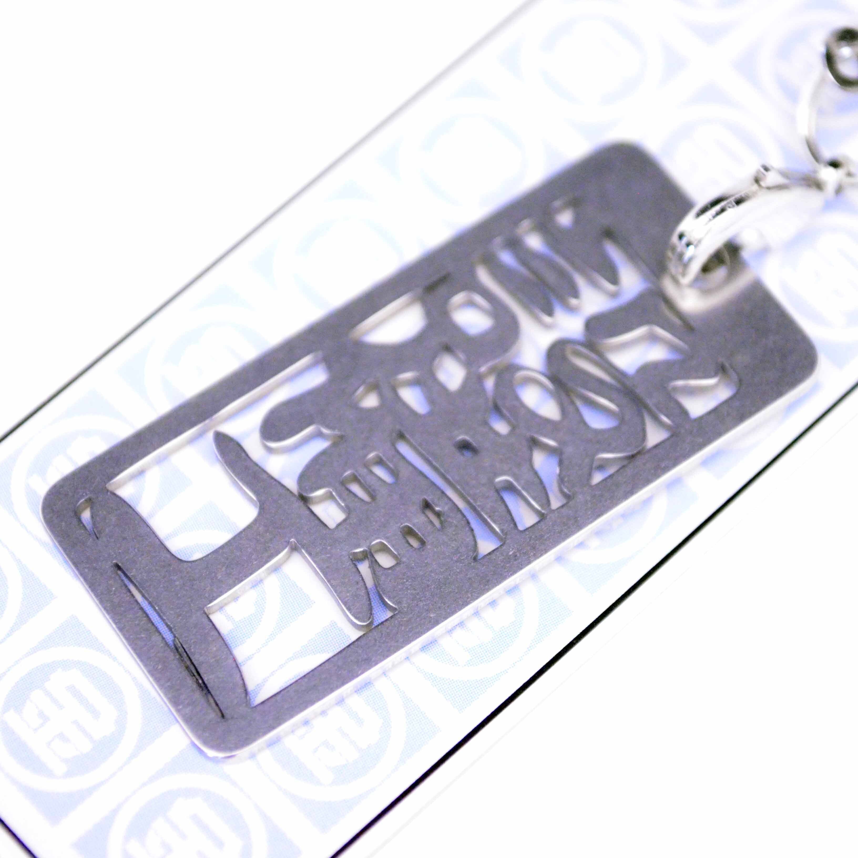 オリジナルデザインのステンレス製各命札です。
