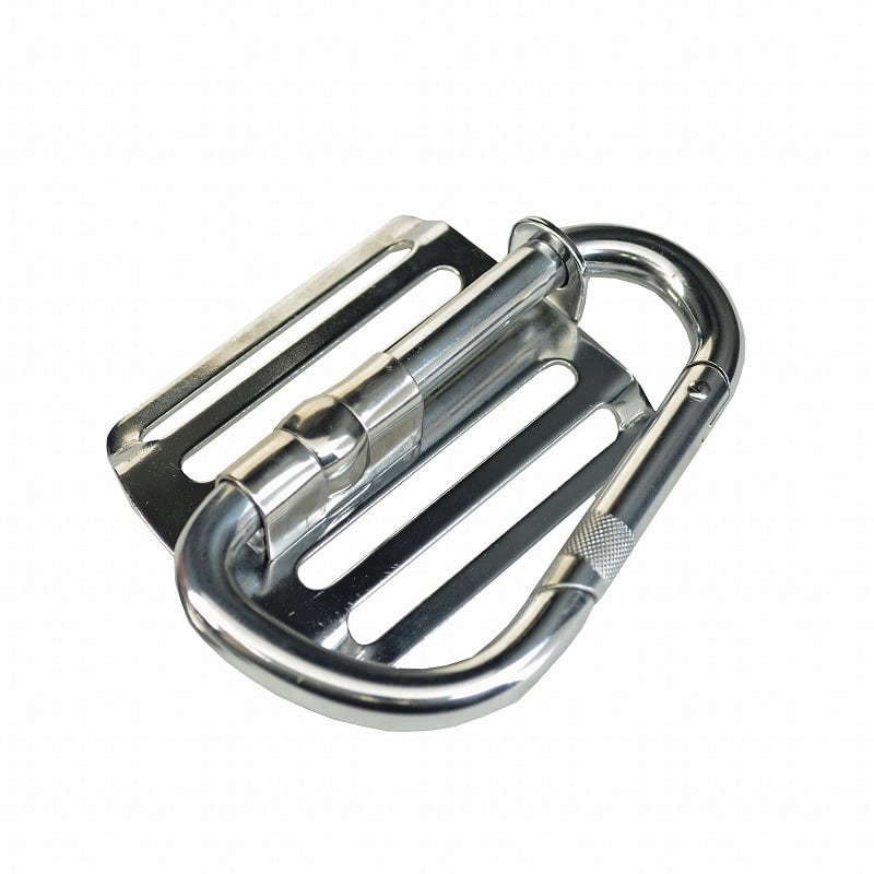 使用時はカラビナが中央部でホールドされ、可動部のぐらつきを防ぎます。