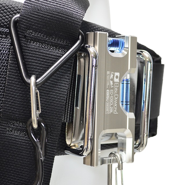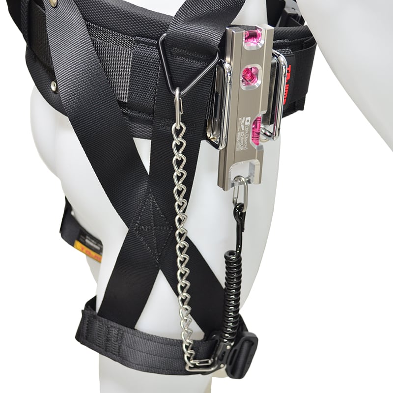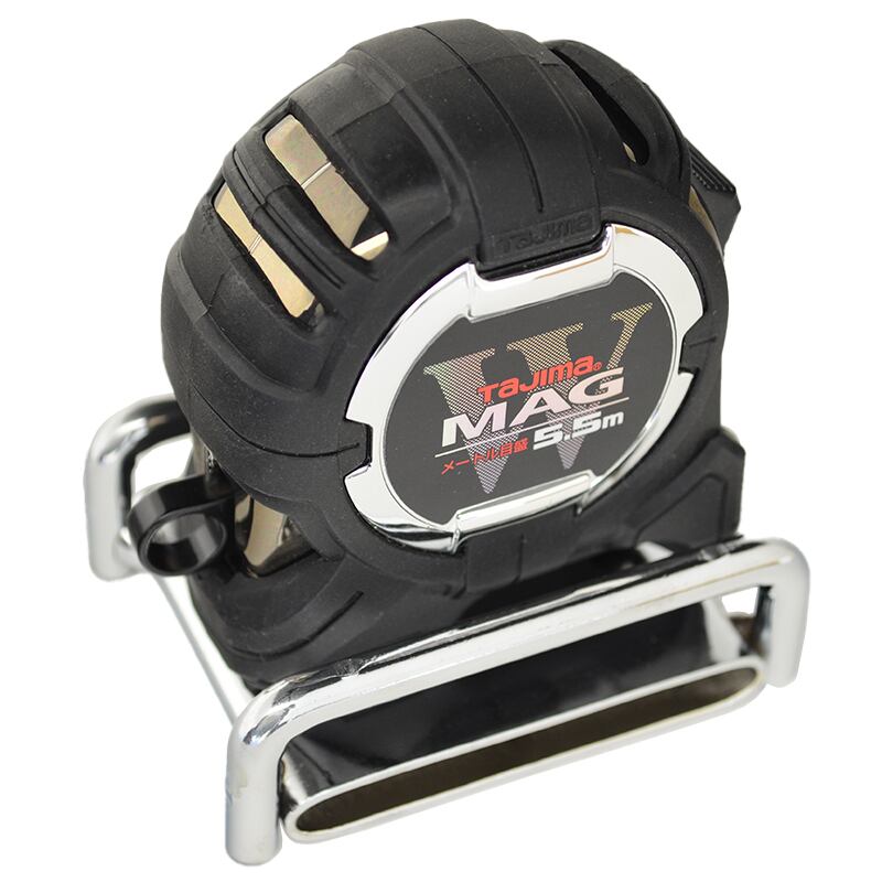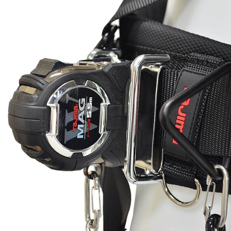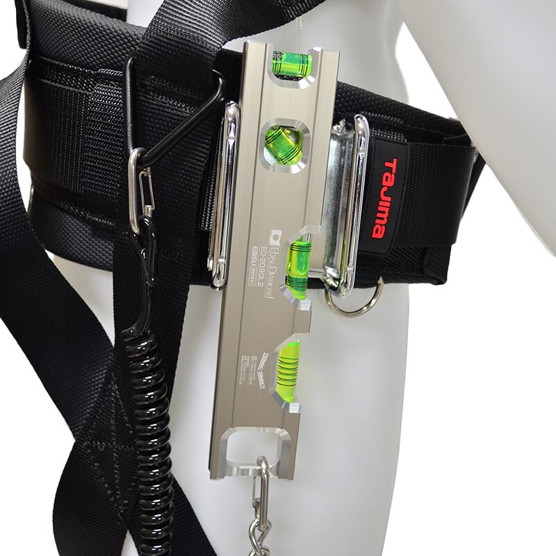 作業用ベルトに通してマグネット付水平器をくっつけて使用します。