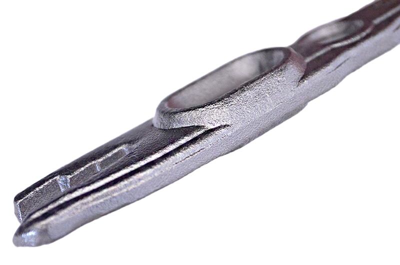 仮枠工事でセパレーターを取り付ける際に生じるコンパネの孔ずれを、セパレーターガイドの先端のフックで誘導し調整します。