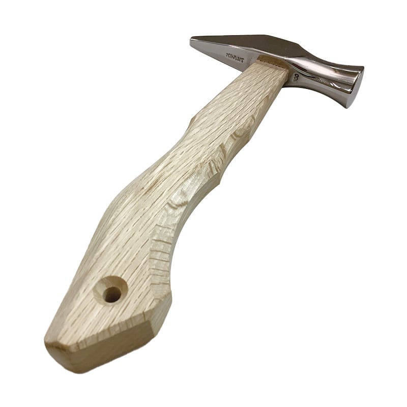 船屋玄能は、カシメ、釘シメに使用するのに便利な形状の頭部です。
