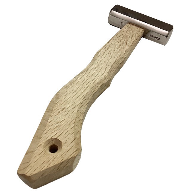 打撃面の片側は平面状で打ち込みやすく、反対側が緩やかな曲面で最後の締め打ちに便利な造り。