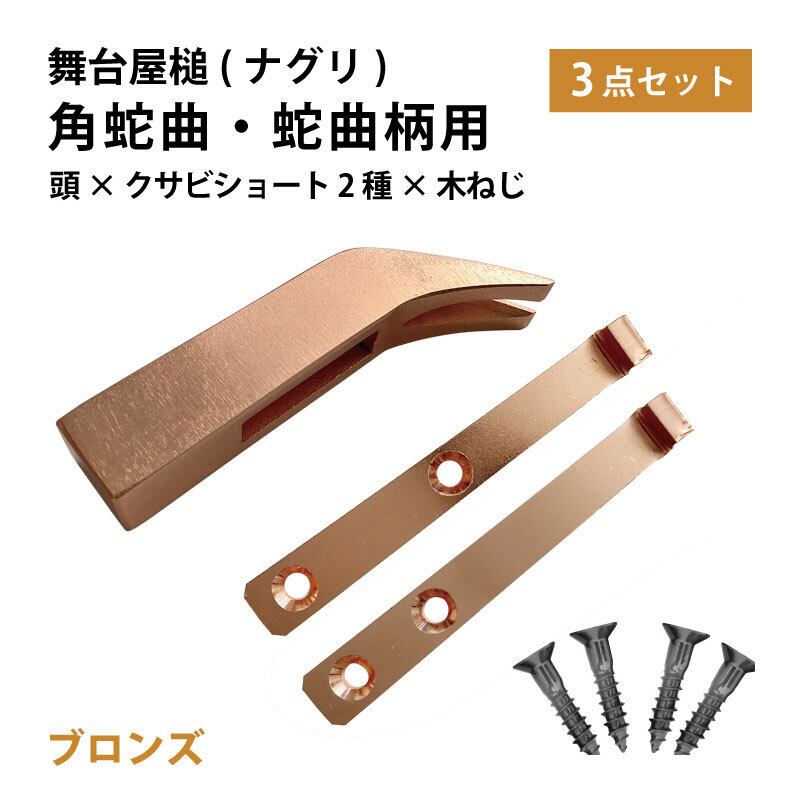 金井産業 マルキン印 3点セット 舞台屋鎚(ナグリ)角蛇曲・蛇曲柄用 頭104㎜(1個) クサビ(2個) 木ねじ(4本) ブロンズ 日本製 燕三条製